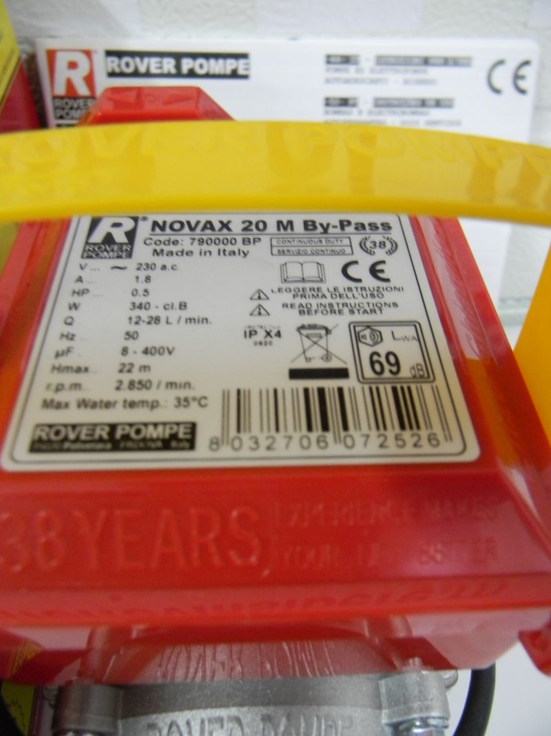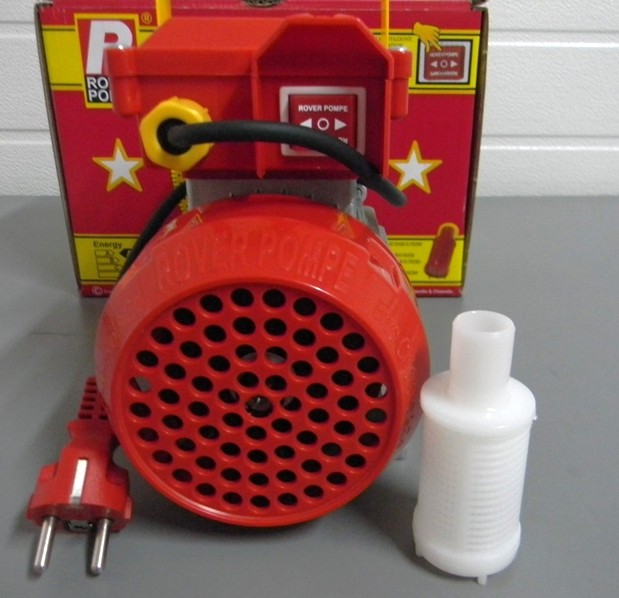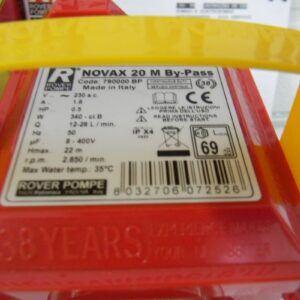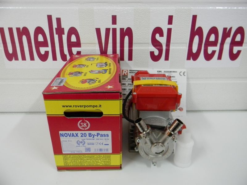 Pompa transvazare vin si alte lichide alimentare si nealimentare, Rover NOVAX 20 By-Pass, turbina alama inoxidabila, capacitate variabila cuprinsa Intre 800 – 1.700 L/h, inaltime maxima refulare variabila Intre 12 – 24 m, diametru iesire turbina 20 mm. Motor monofazic la 220V cu putere de 350W la 2850 rpm, comutator de schimbare sens. Ele sunt reversibile, adica se poate schimba sensul de rotatie a rotorului, incat absortia sa devina refulare si invers. Pompa cantareste 5 kg.